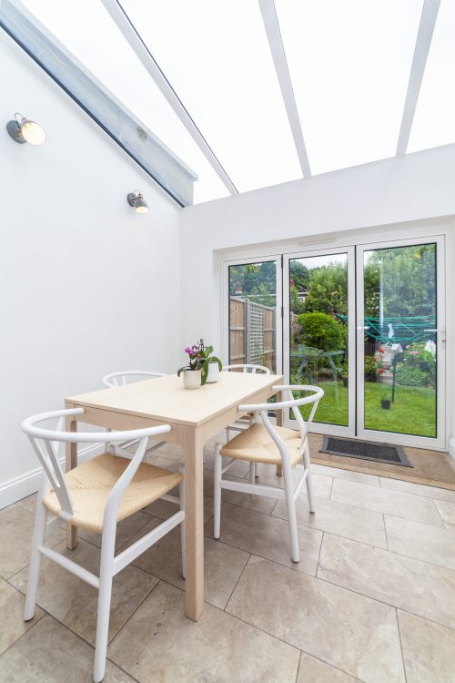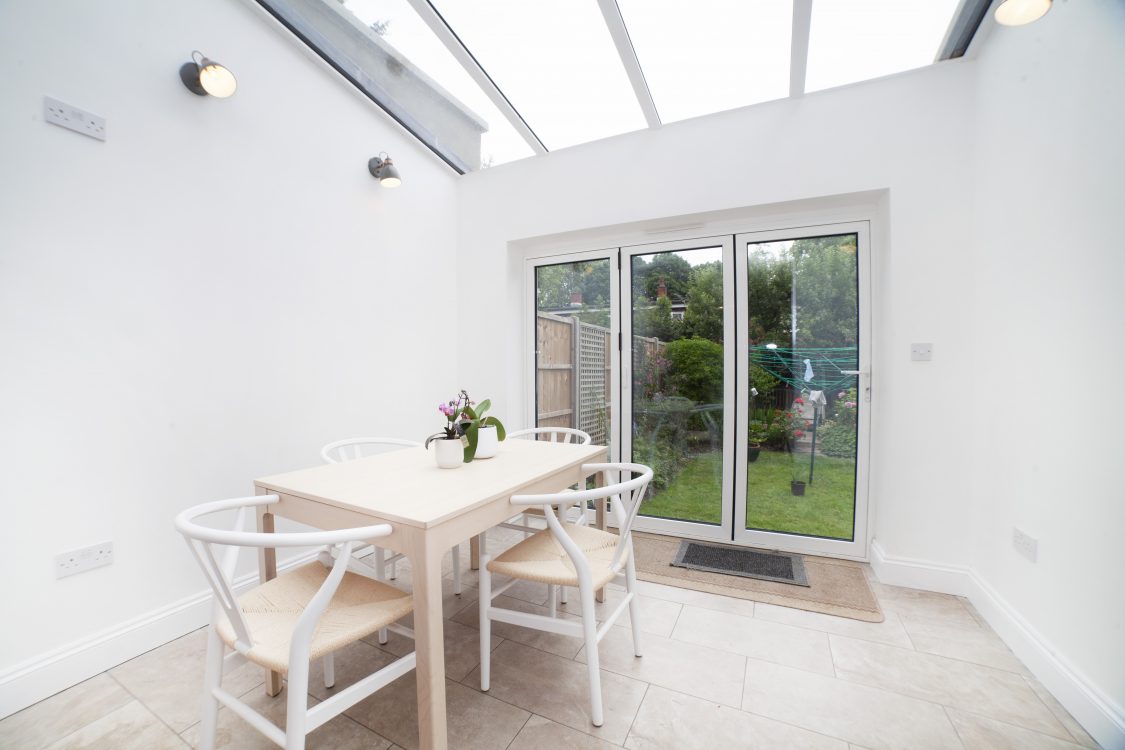 Linx Design and Build were on hand to not only provide this family with additional space, but to create a modern and airy feel to the downstairs kitchen and dining area and generate a contrasting environment in comparison to the more traditional features of the house. With bi-fold doors and a glazed pitched roof, the internal and external spaces blend beautifully into one and connect the owners to the outside world, whether it be to hold a summer party outdoors, or to host dinner in the newly installed kitchen, which provides warmth and cosiness during the winter months.